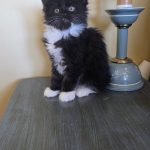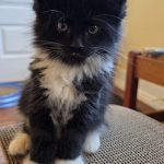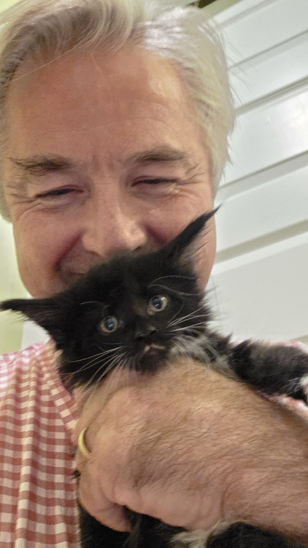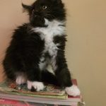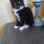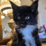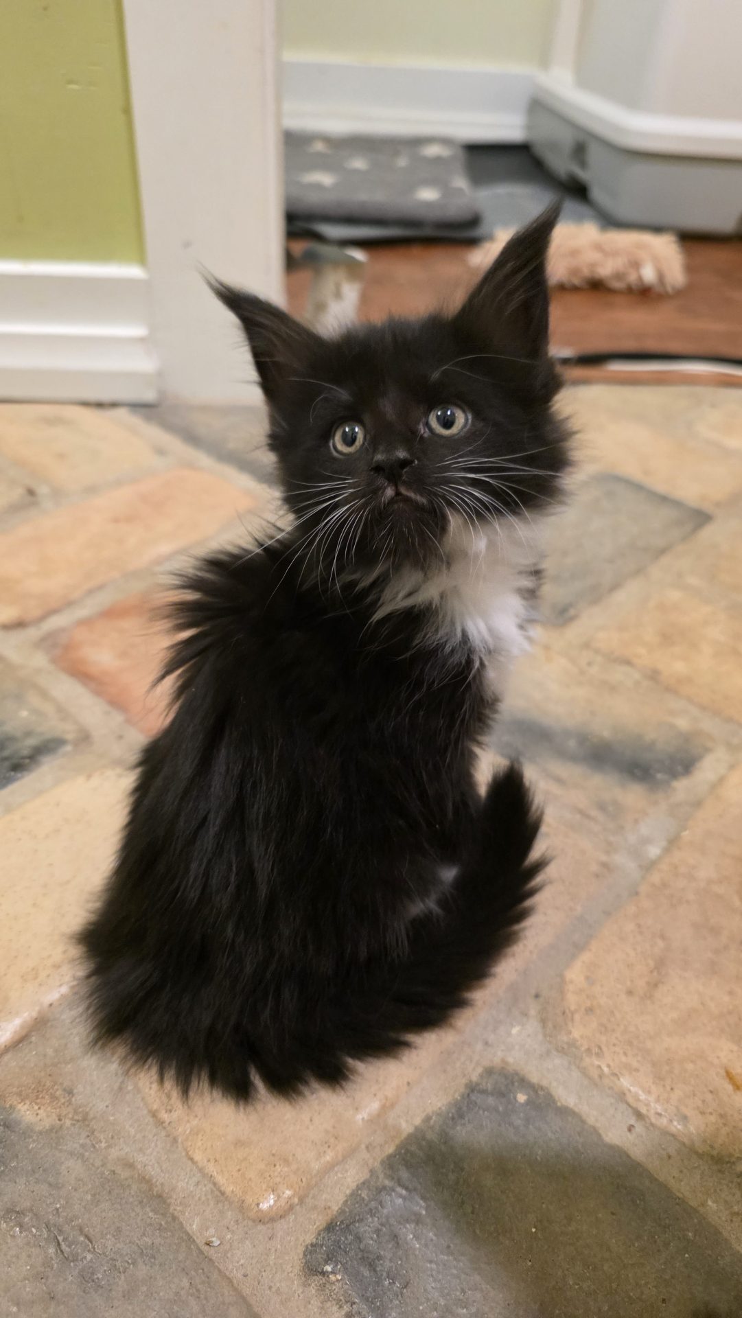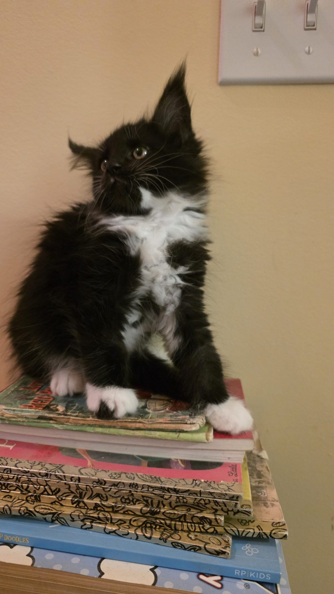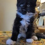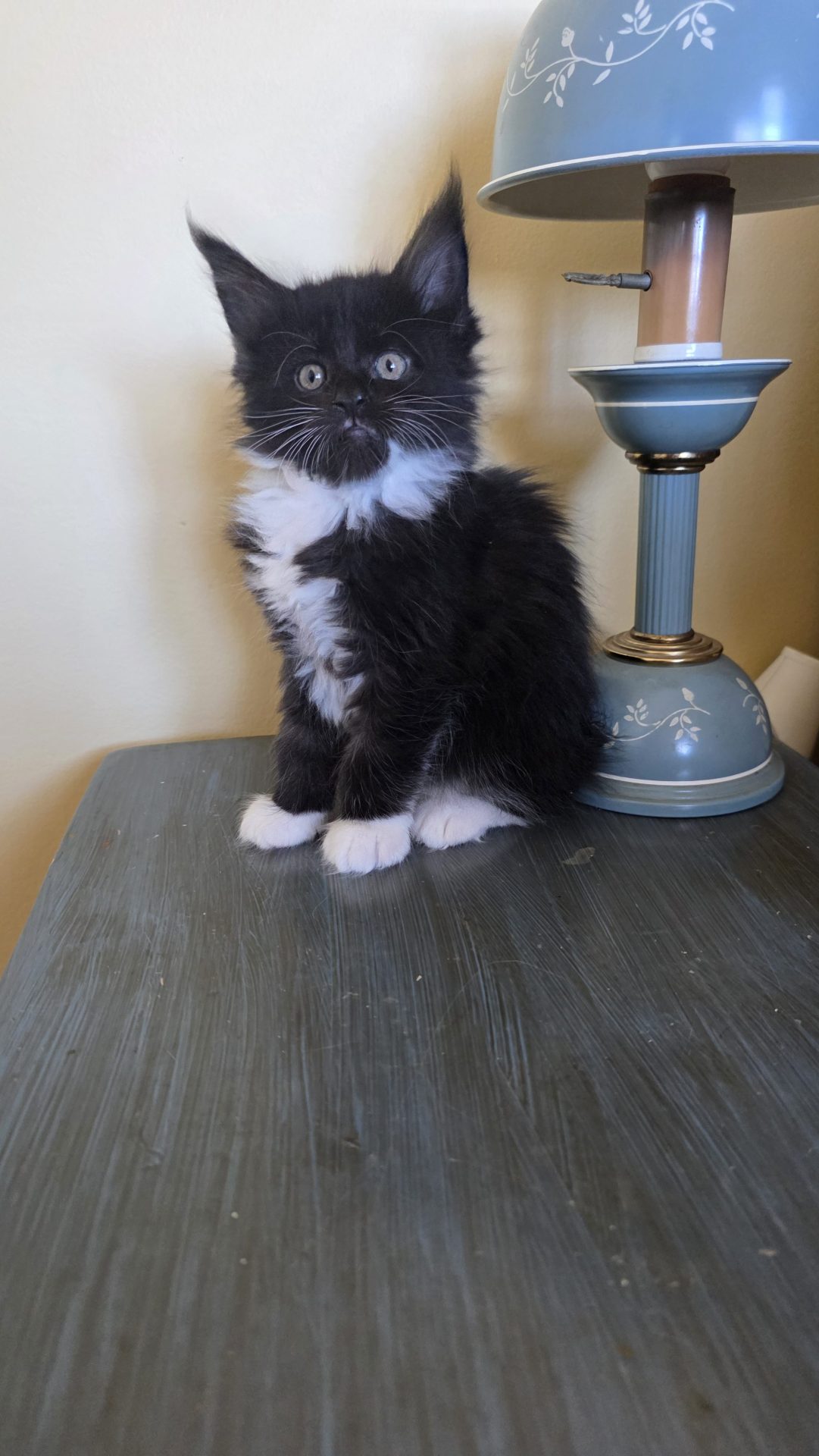 On Hold BETH TAYLOR OF COLUMBUS, GEORGIA WILL HAVE THIS NEW KITTEN FOR THE HOLIDAYS!!!! I originally called this one Button. Why? Well, because she is cute as a button, of course! But Beth chose Katherine the Great, and that is even better! Kate is elegant in her black tux, and her subtle white lipstick and her matching long white whiskers really provide the perfect accents. Add the white gloves and this little Cinderella is all dressed up for the ball! And just wait until her white Elizabethan collar comes out in all its glory! Kate has a demure sweetness mixed with a playful flirtaciousness, and the combination is simply divine! These will be holidays to remember for Beth, I assure you!