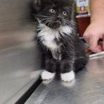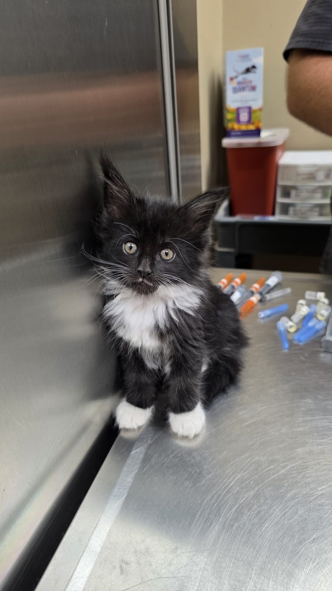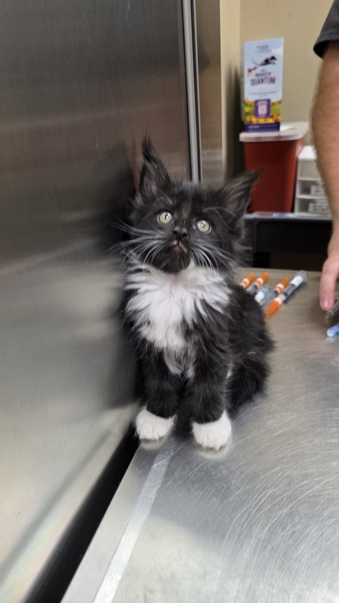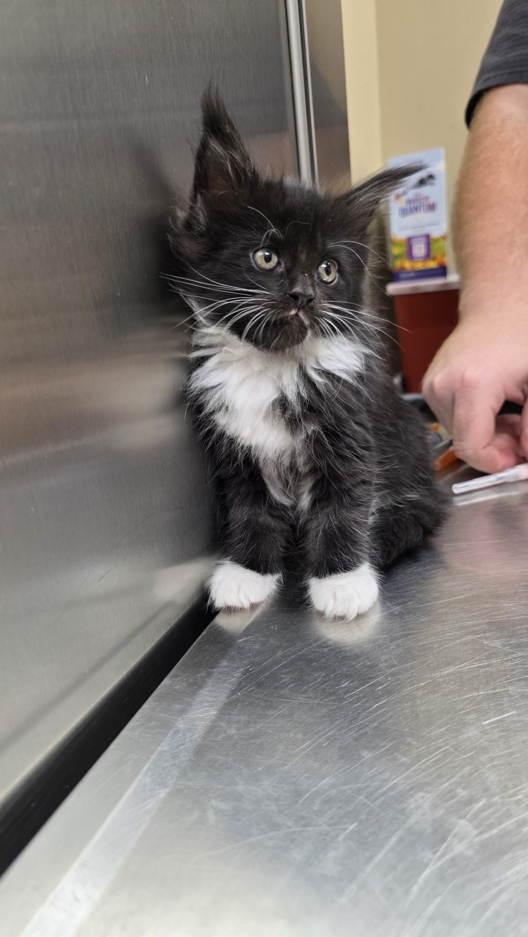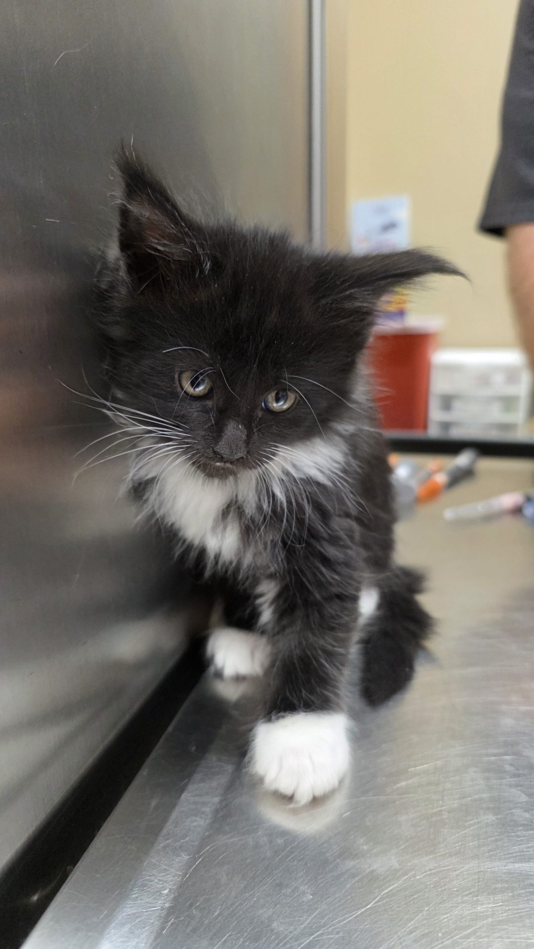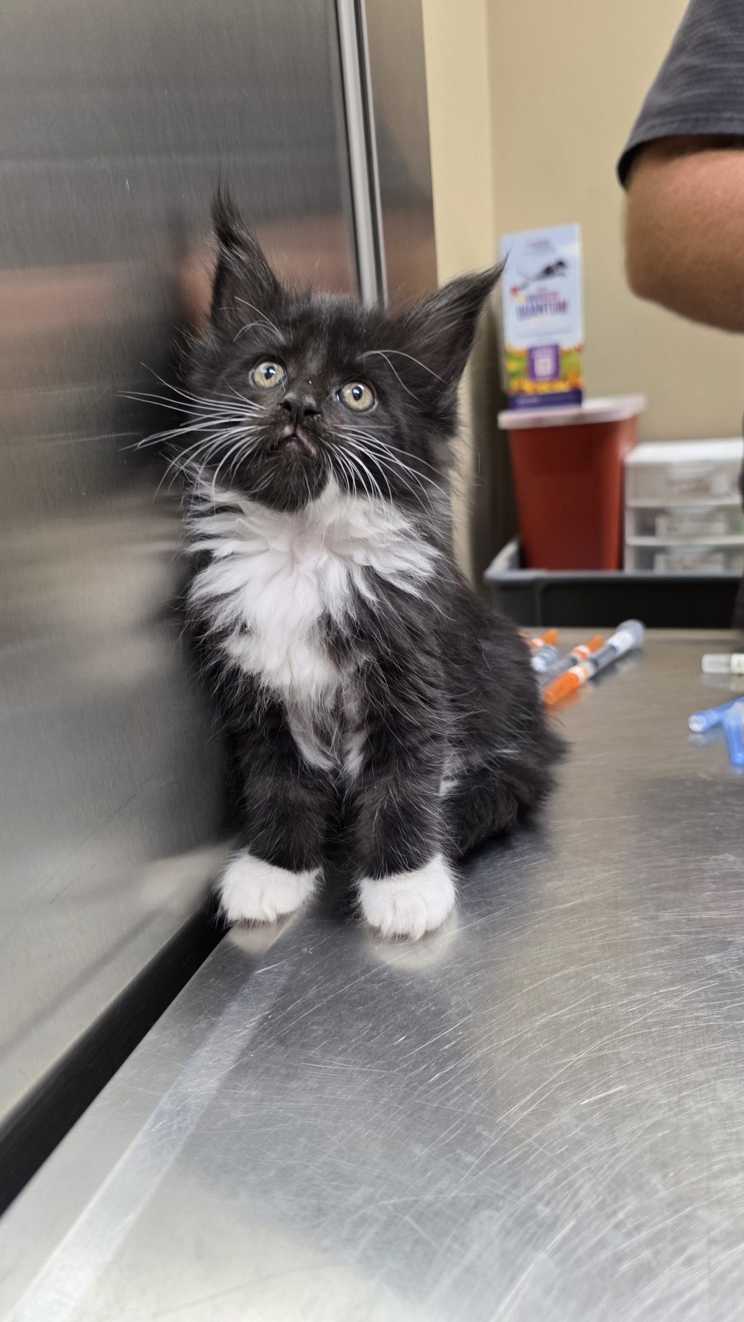 On Hold BETH TAYLOR OF COLUMBUS, GEORGIA WILL HAVE THIS NEW KITTEN FOR THE HOLIDAYS!!!! I originally called this one Button. Why? Well, because she is cute as a button, of course! But Beth chose Katherine the Great, and that is even better! Kate is elegant in her black tux, and her subtle white lipstick and her matching long white whiskers really provide the perfect accents. Add the white gloves and this little Cinderella is all dressed up for the ball! And just wait until her white Elizabethan collar comes out in all its glory! Kate has a demure sweetness mixed with a playful flirtaciousness, and the combination is simply divine! These will be holidays to remember for Beth, I assure you!