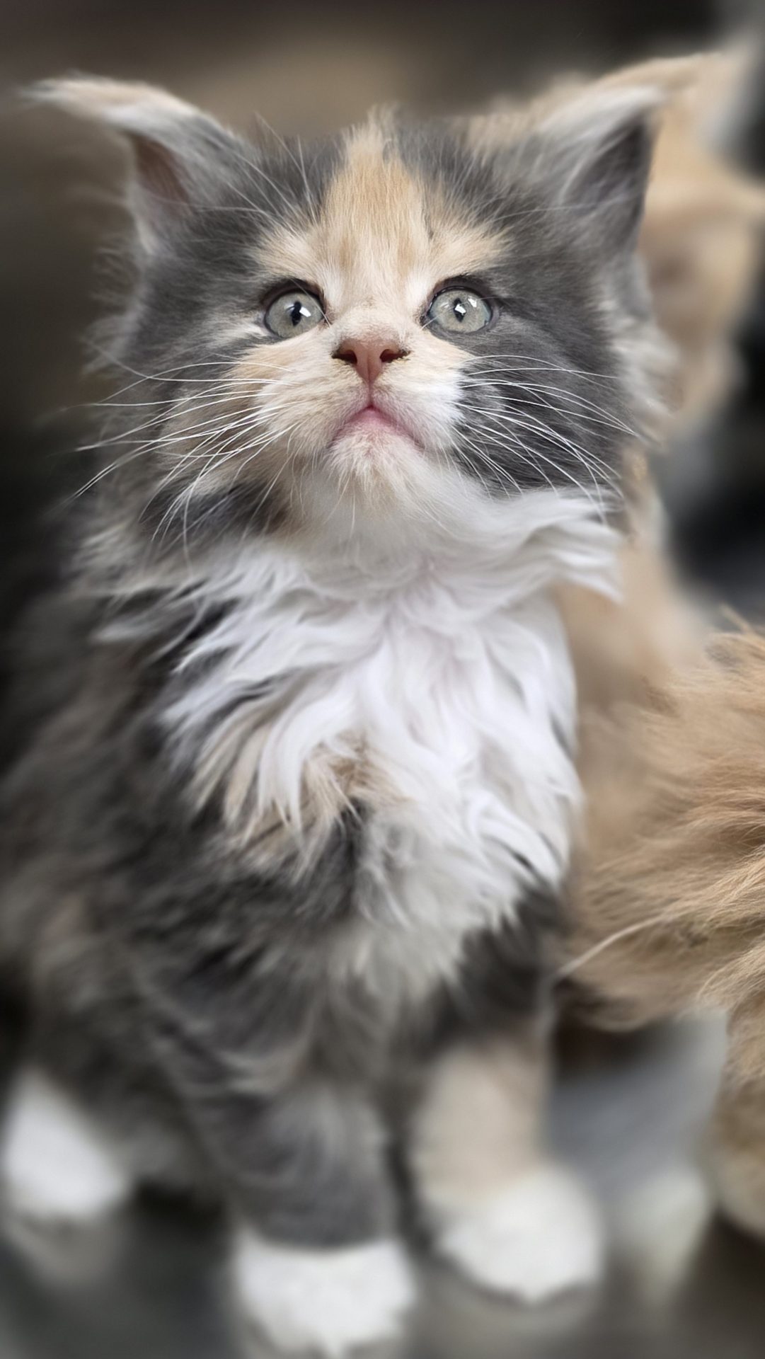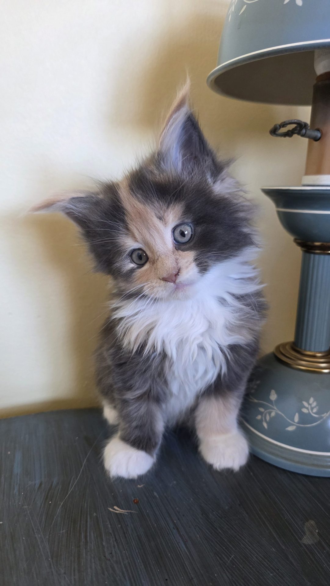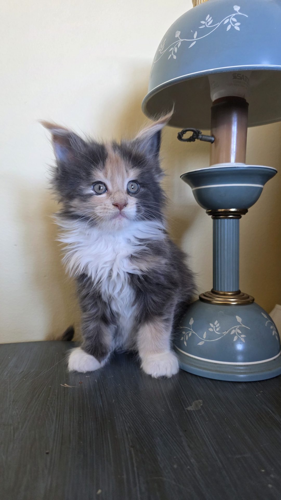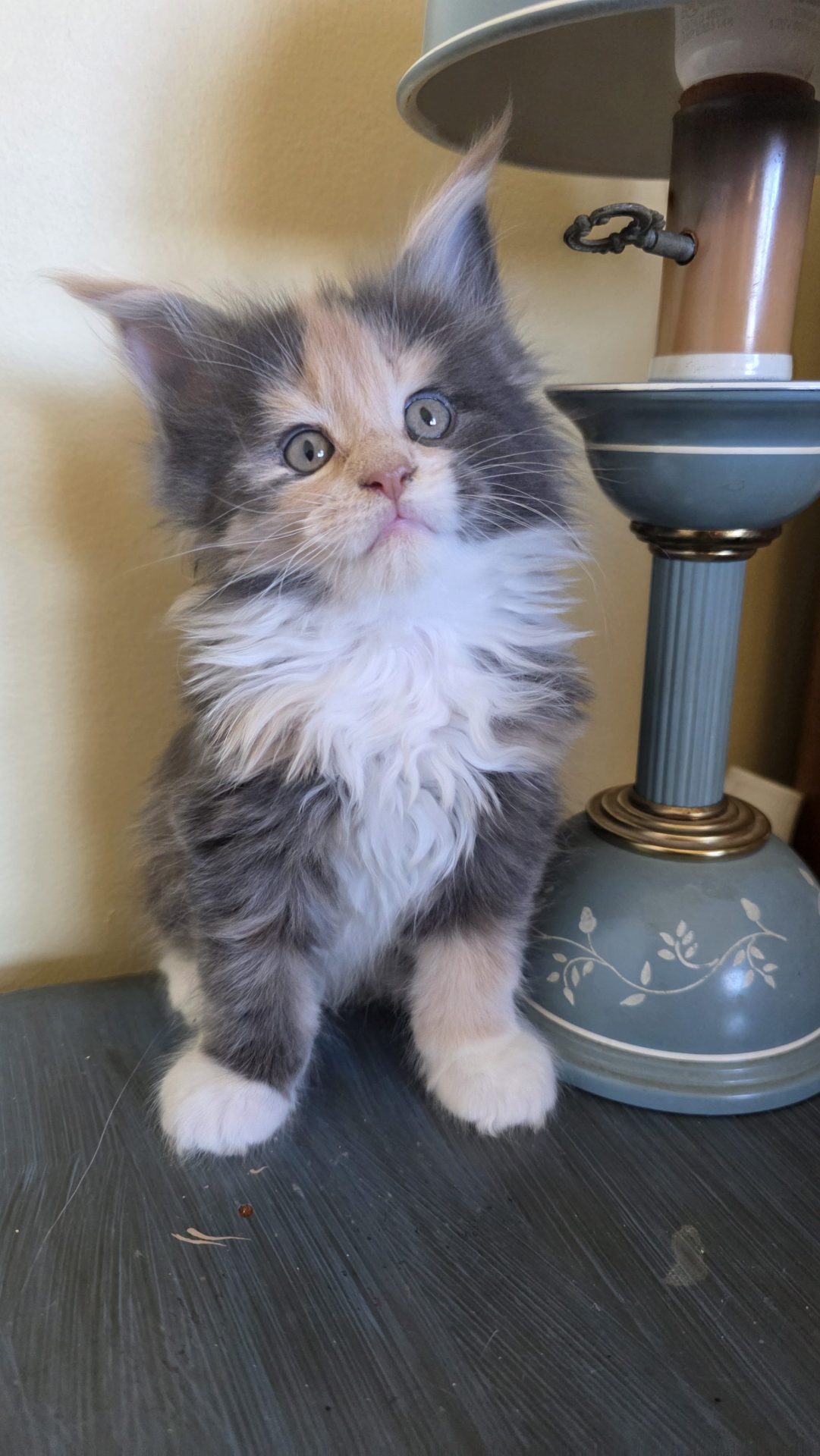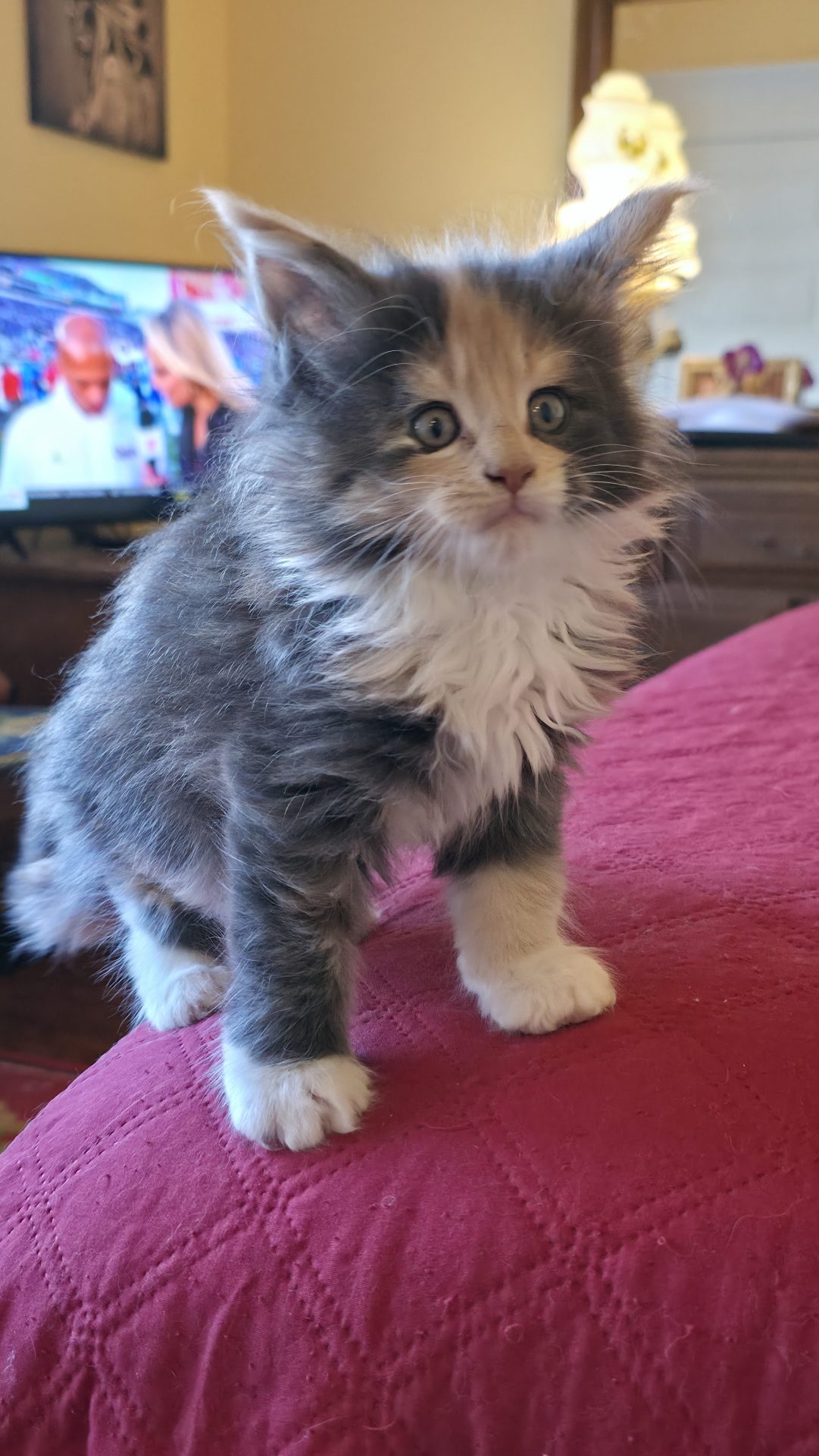 On Hold This little stunner is staying right here at Jellico Dream! Even though I have some crazy offers for her, she is so unique and special I just can't bring myself to sell her at any price! The blue-silver and peach coat, the peach fleur-de-lis on her face, her studious brow, and a personality every bit as special as her look quickly had she and I locked together at the heart. She is going to make some beautiful babies down the road, though, so stay tuned for some amazing kittens out of this one in early 2027! Sequoia and Zorro will be her suitors! She'll make red boys, tricolor girls, and with Zorro, some blue-eyed dreamboats too!