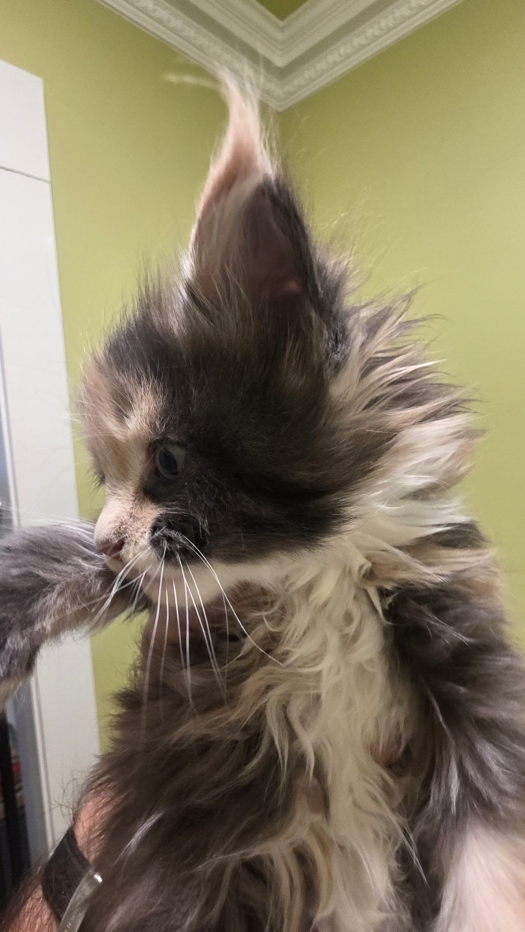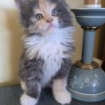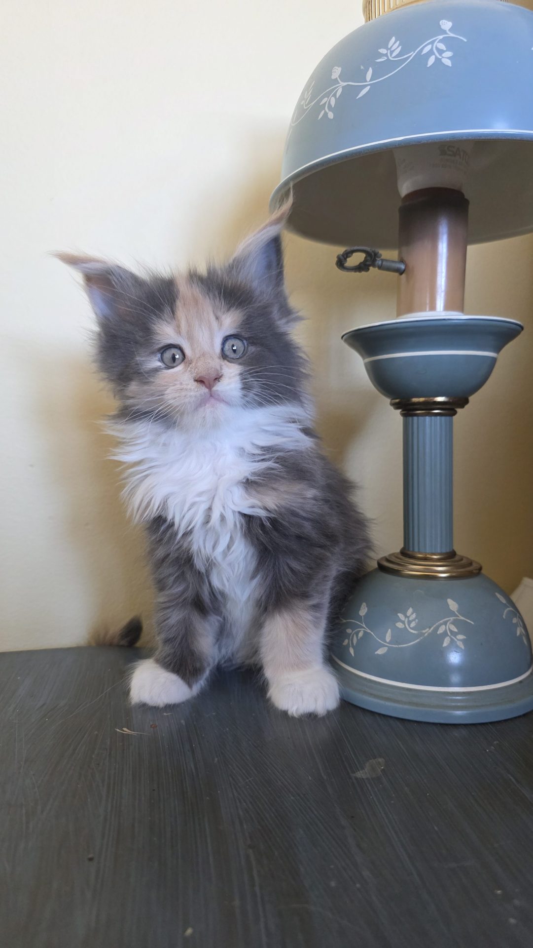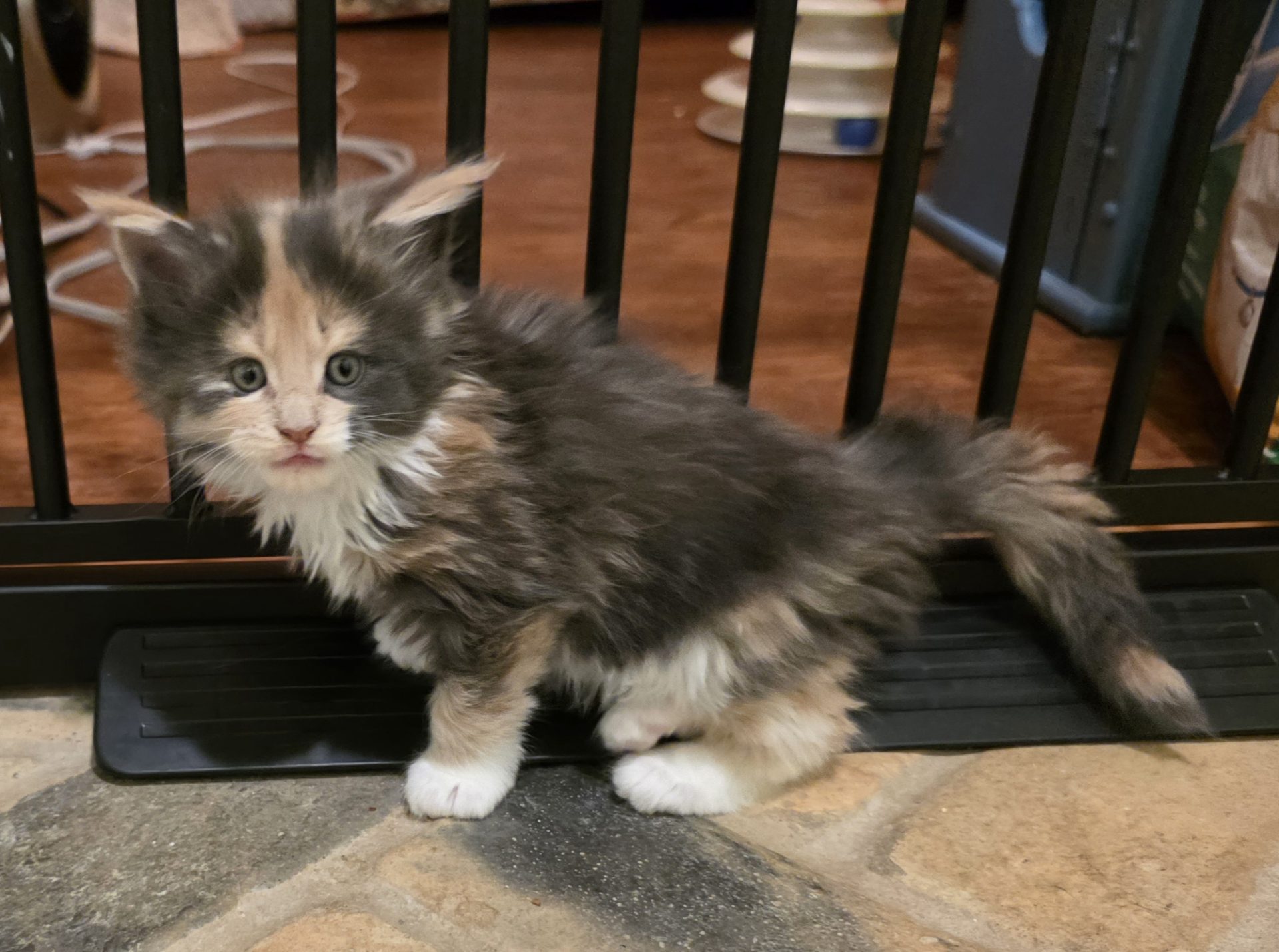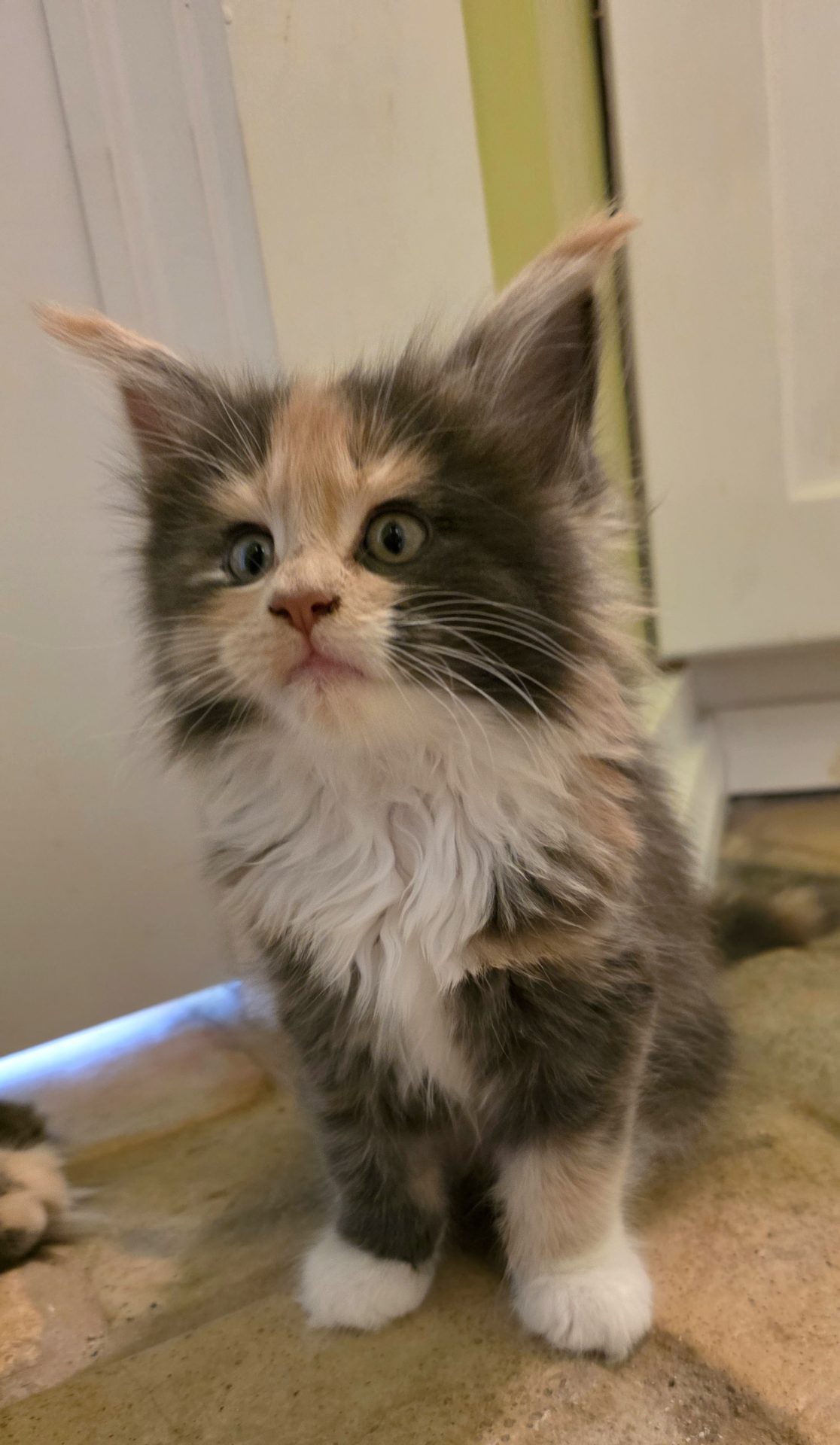 On Hold This little stunner is staying right here at Jellico Dream! Even though I have some crazy offers for her, she is so unique and special I just can't bring myself to sell her at any price! The blue-silver and peach coat, the peach fleur-de-lis on her face, her studious brow, and a personality every bit as special as her look quickly had she and I locked together at the heart. She is going to make some beautiful babies down the road, though, so stay tuned for some amazing kittens out of this one in early 2027! Sequoia and Zorro will be her suitors! She'll make red boys, tricolor girls, and with Zorro, some blue-eyed dreamboats too!