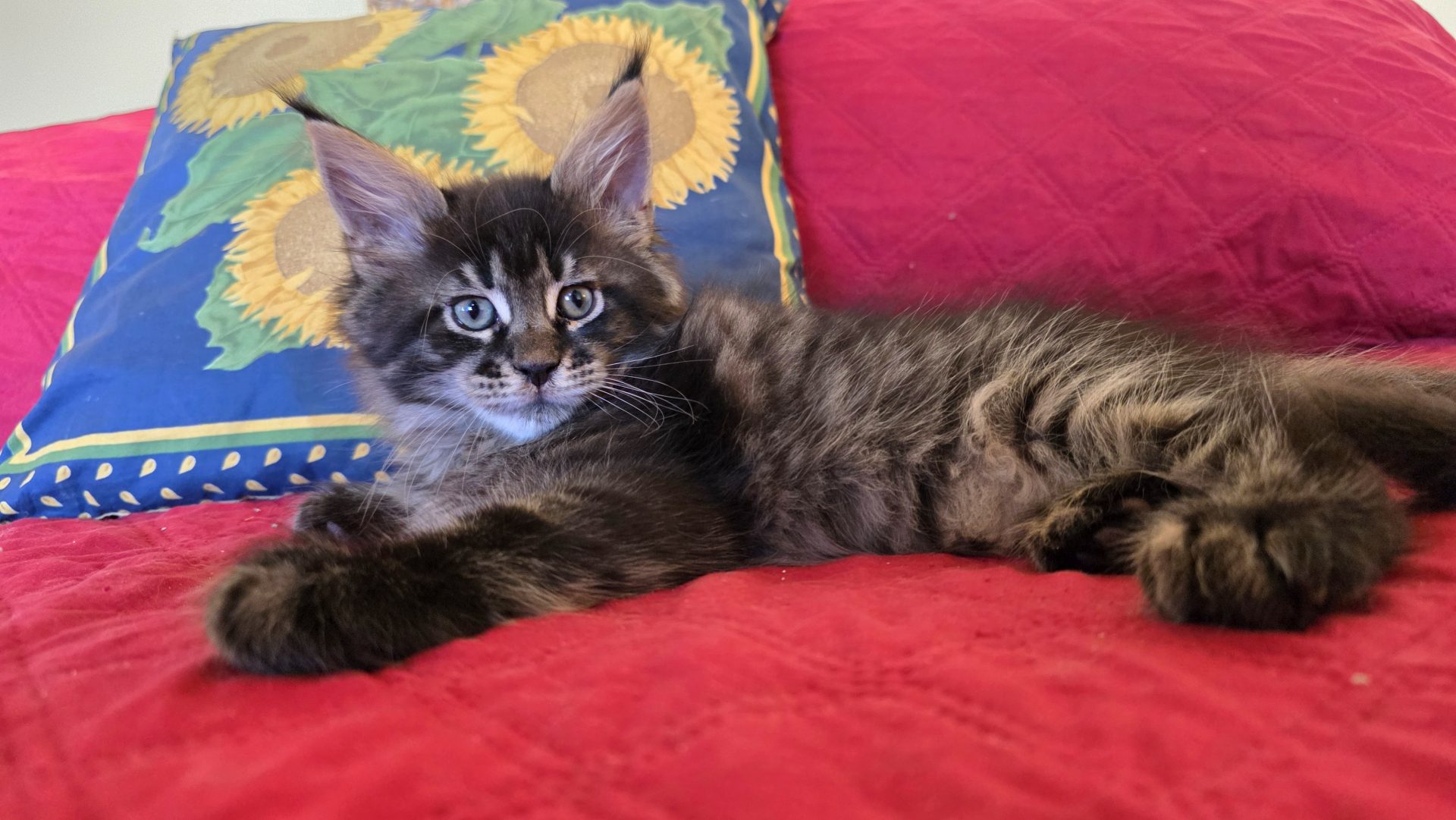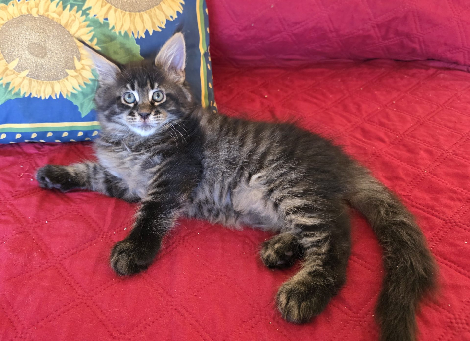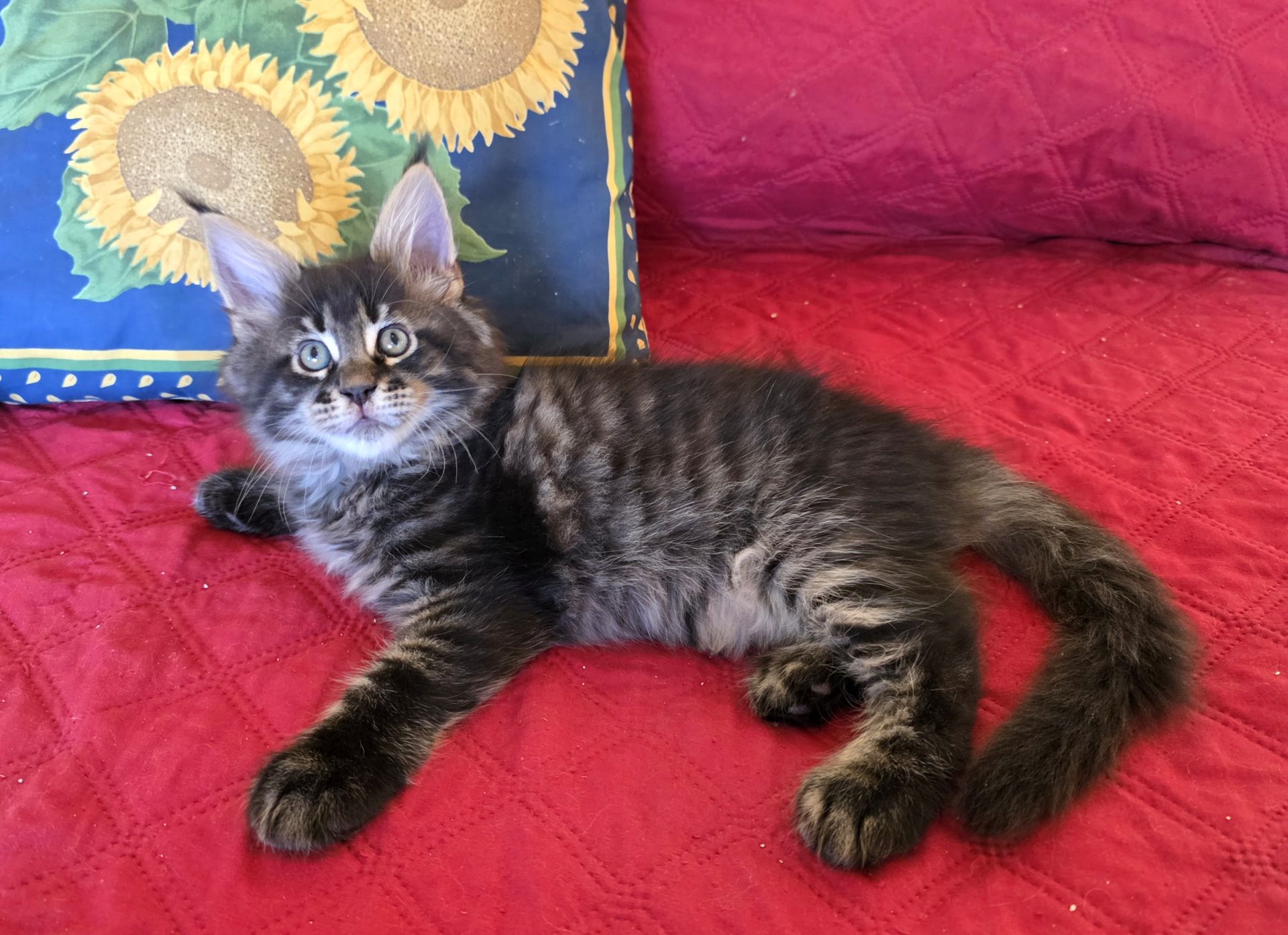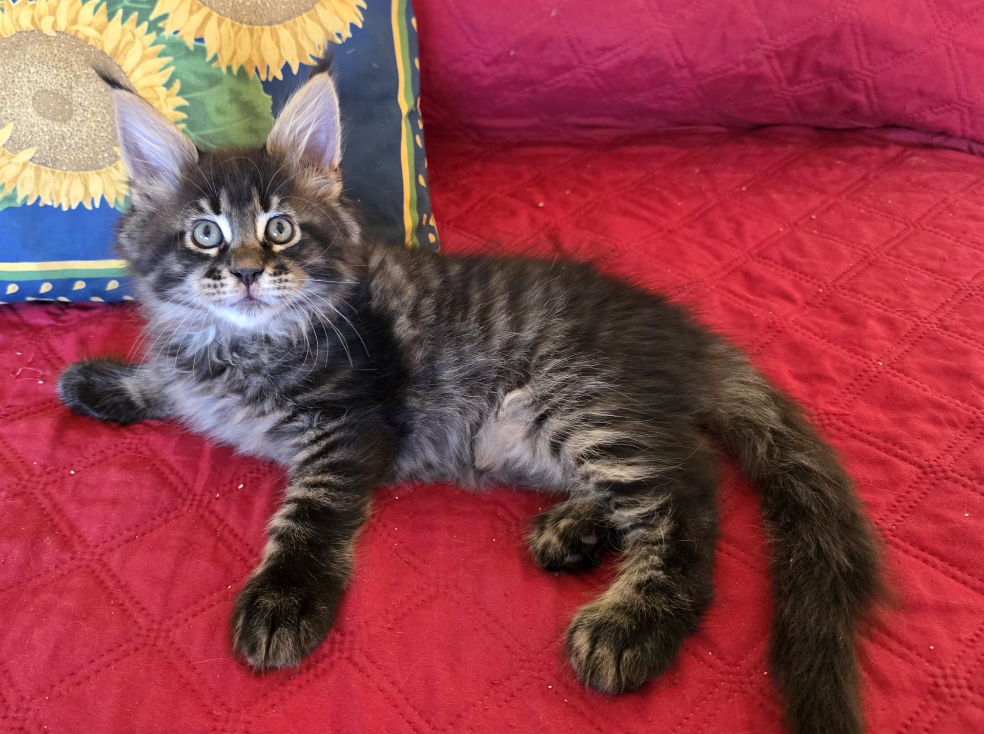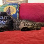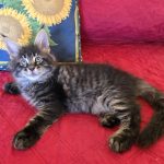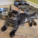 Reserved PAIRING UP WITH HIS BROTHER KID GALAHAD AS NEW MEMBERS OF THE CABRAL FAMILY IN SACO, MAINE!!! King Creole is a big, dark, fluffy boy who is best friends with his brother Kid Galahad. The Cabrals are keeping them together and taking them both! I am thrilled and these two amazing kittens will be too! They belong together! King Creole is flirty and fun. He is very rambunctious in play, but when it comes time to cuddle he's all in. And the ear tips on this one are going to be huge--fit for a King! Together with his white muzzle and white eyeliner, they will make for a very photogenic Maine Coon! One thing's for sure--with Kid Galahad and King Creole in bed with them, those cold winter nights in Maine are now going to be a lot cozier for the Cabrals!