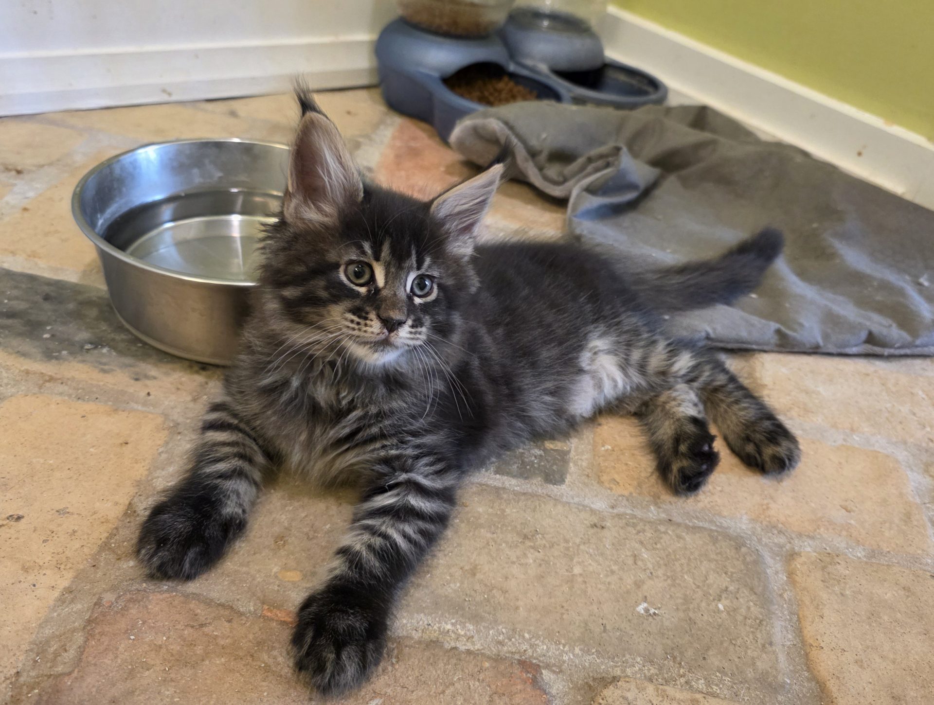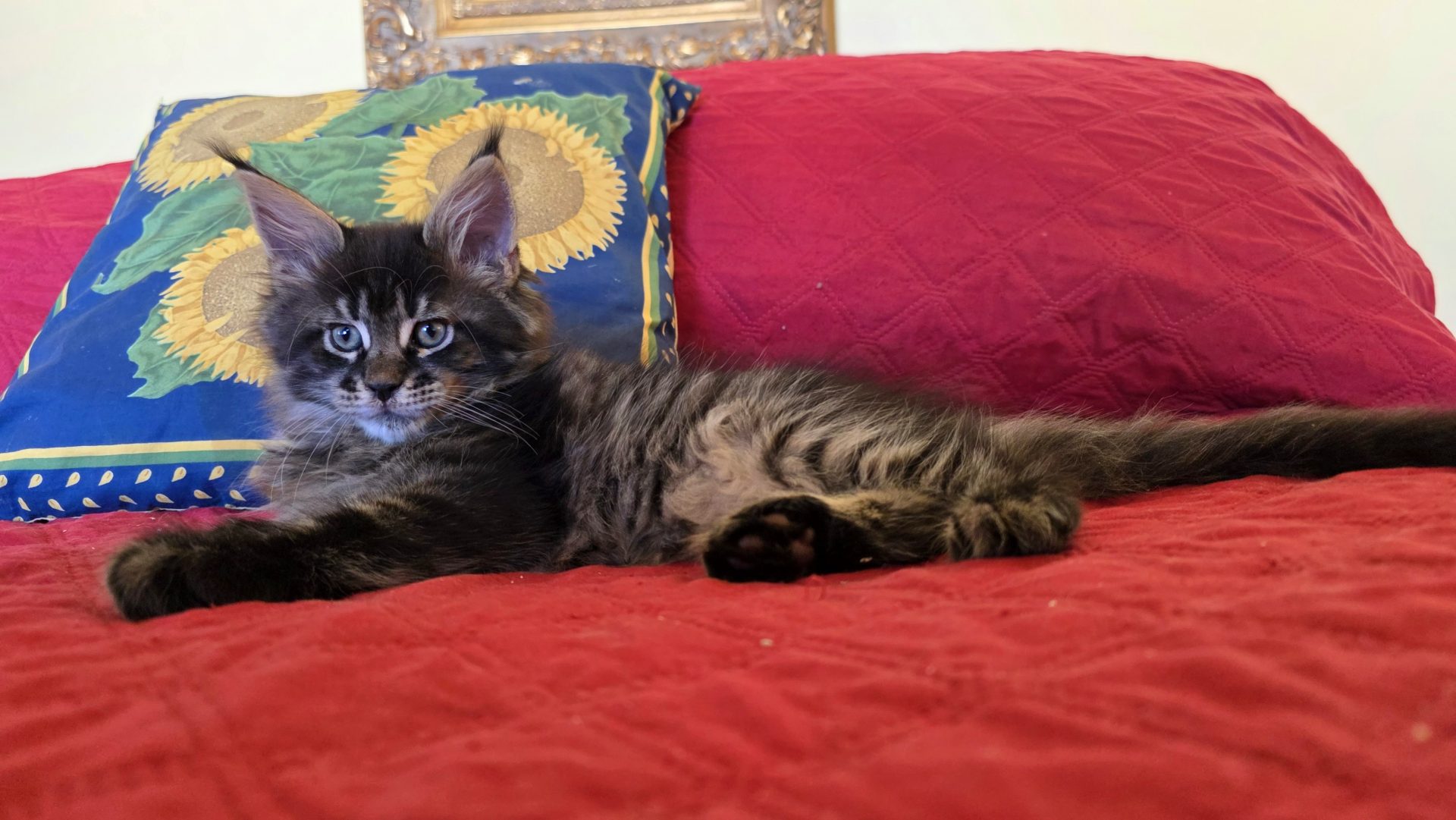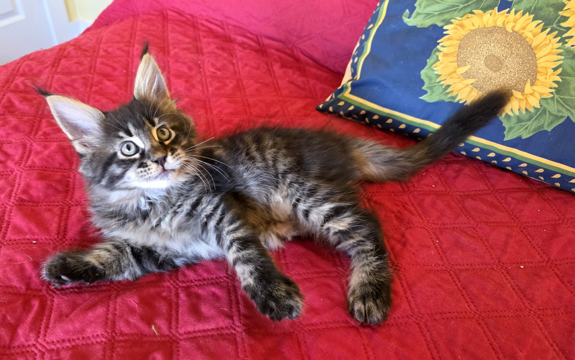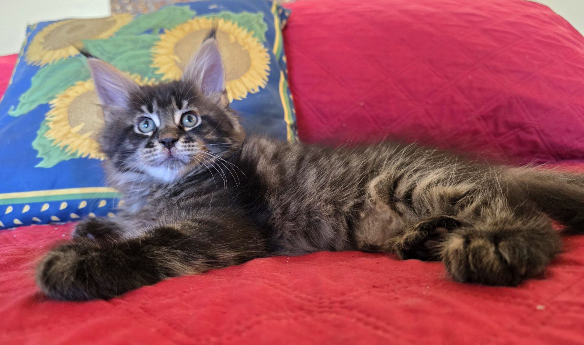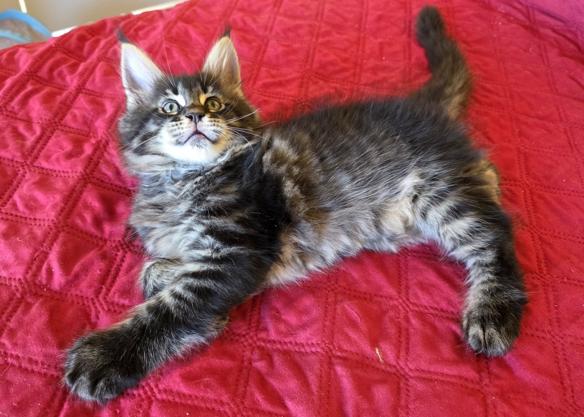 Reserved PAIRING UP WITH HIS BROTHER KID GALAHAD AS NEW MEMBERS OF THE CABRAL FAMILY IN SACO, MAINE!!! King Creole is a big, dark, fluffy boy who is best friends with his brother Kid Galahad. The Cabrals are keeping them together and taking them both! I am thrilled and these two amazing kittens will be too! They belong together! King Creole is flirty and fun. He is very rambunctious in play, but when it comes time to cuddle he's all in. And the ear tips on this one are going to be huge--fit for a King! Together with his white muzzle and white eyeliner, they will make for a very photogenic Maine Coon! One thing's for sure--with Kid Galahad and King Creole in bed with them, those cold winter nights in Maine are now going to be a lot cozier for the Cabrals!