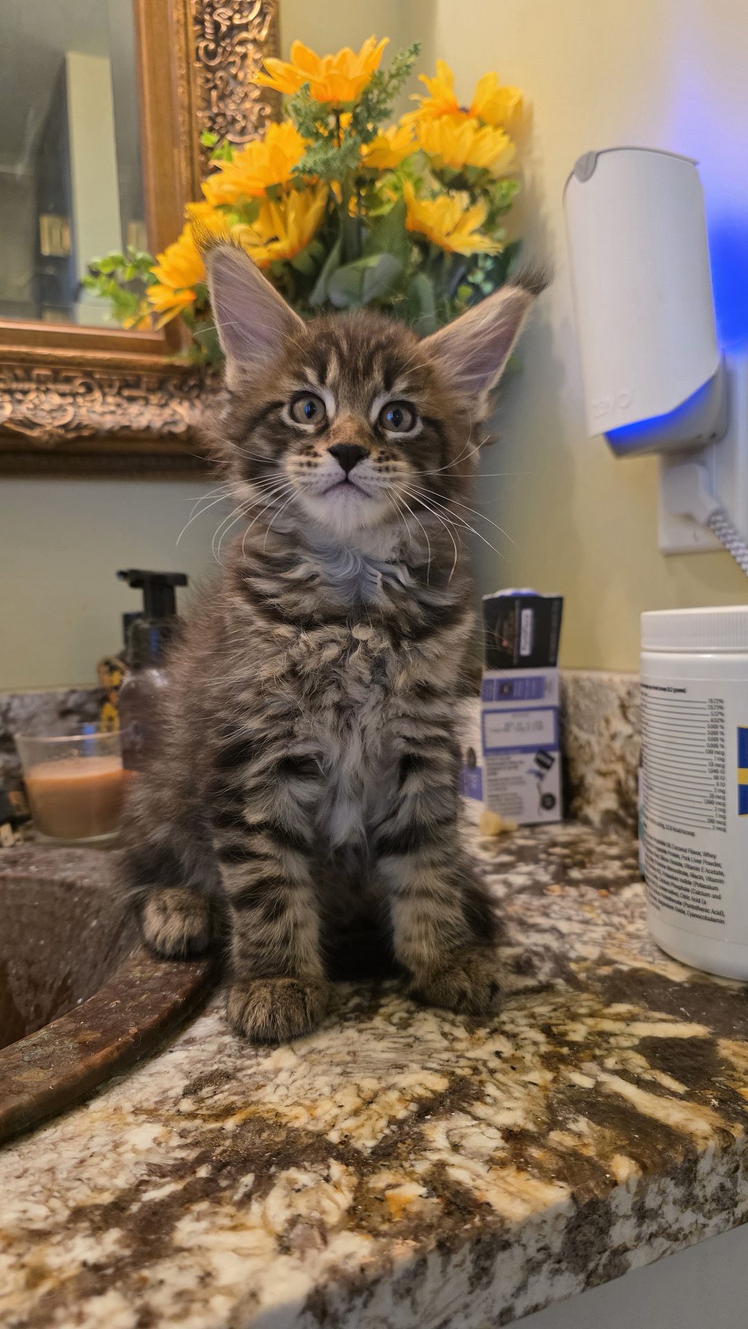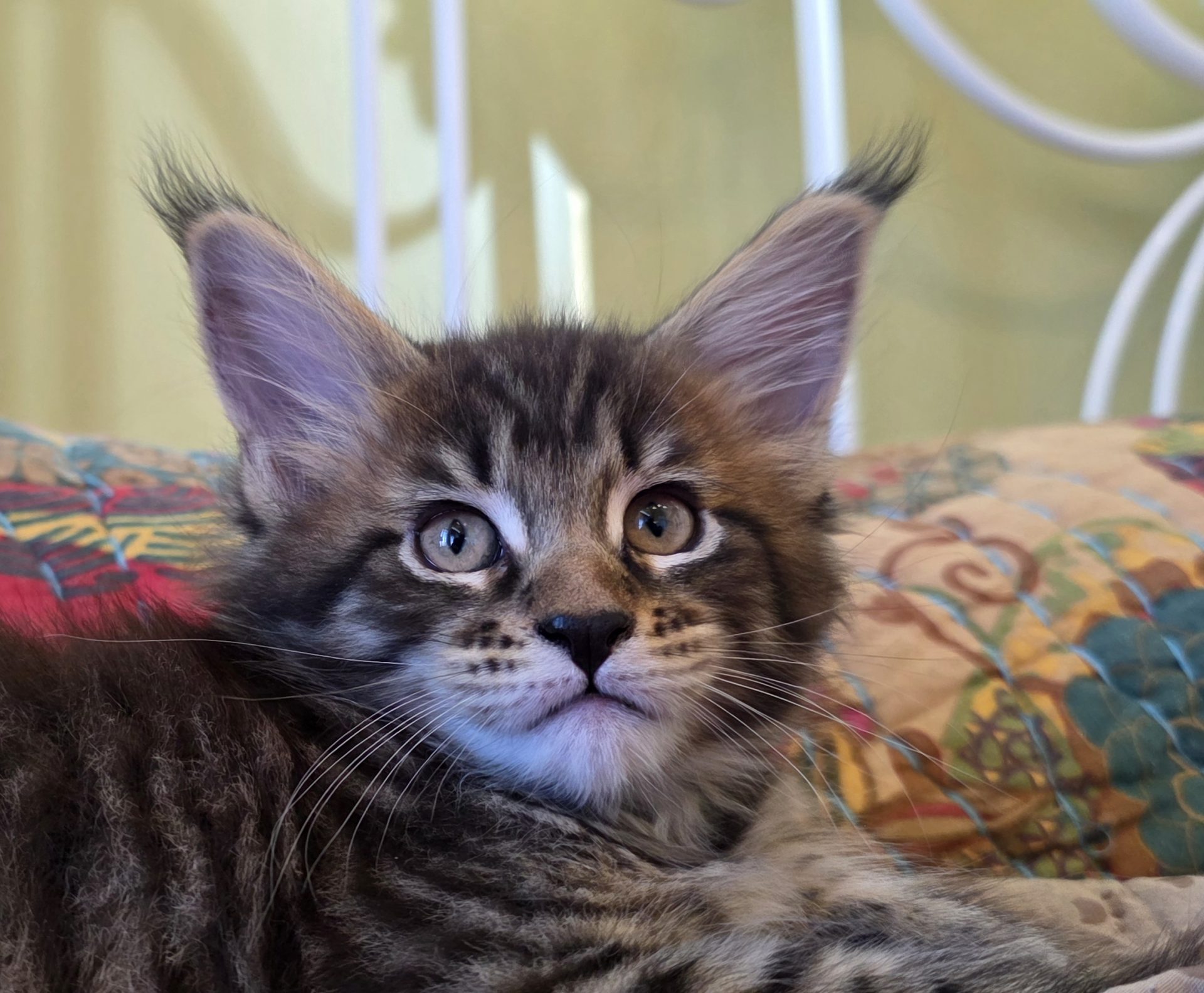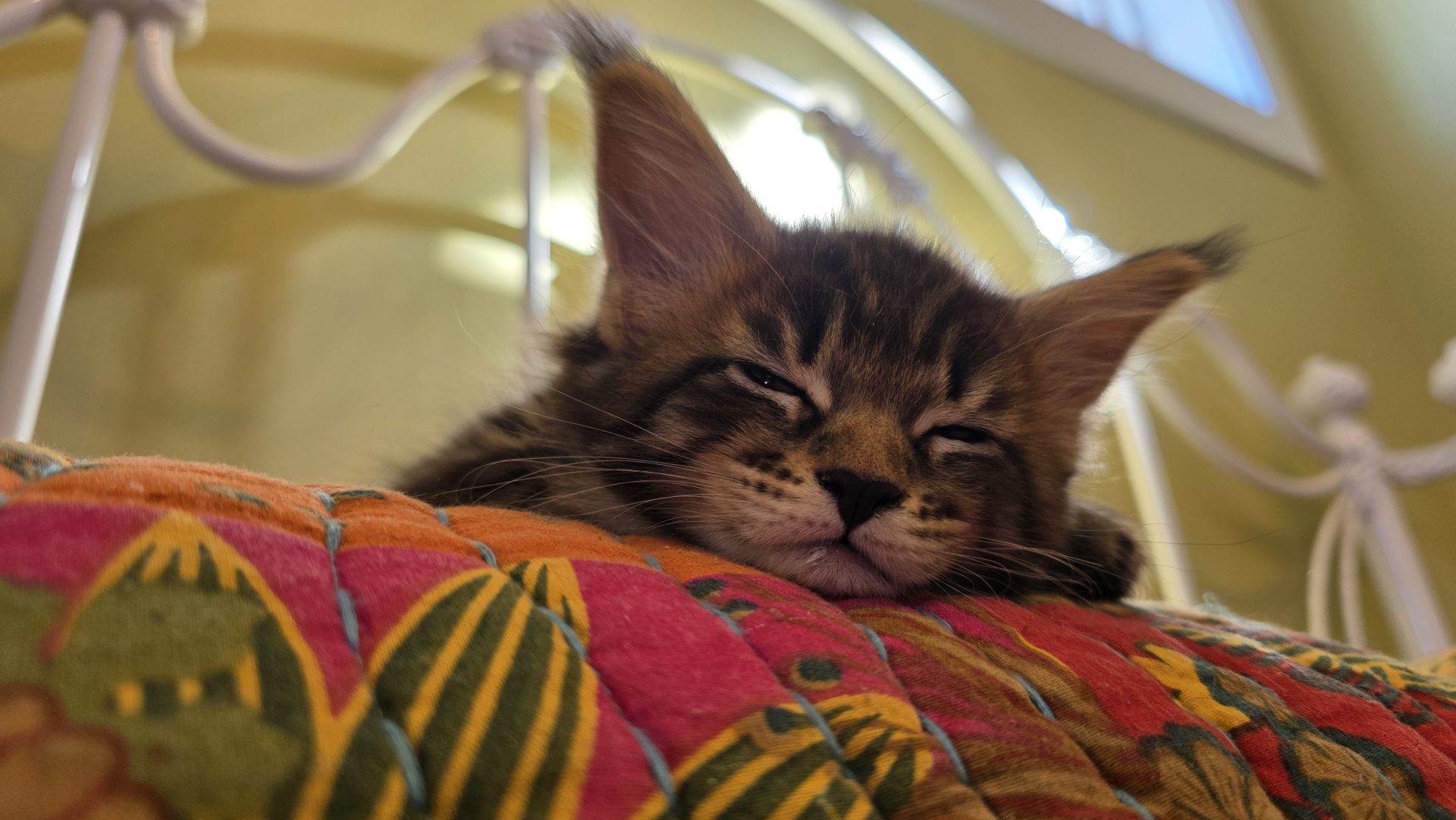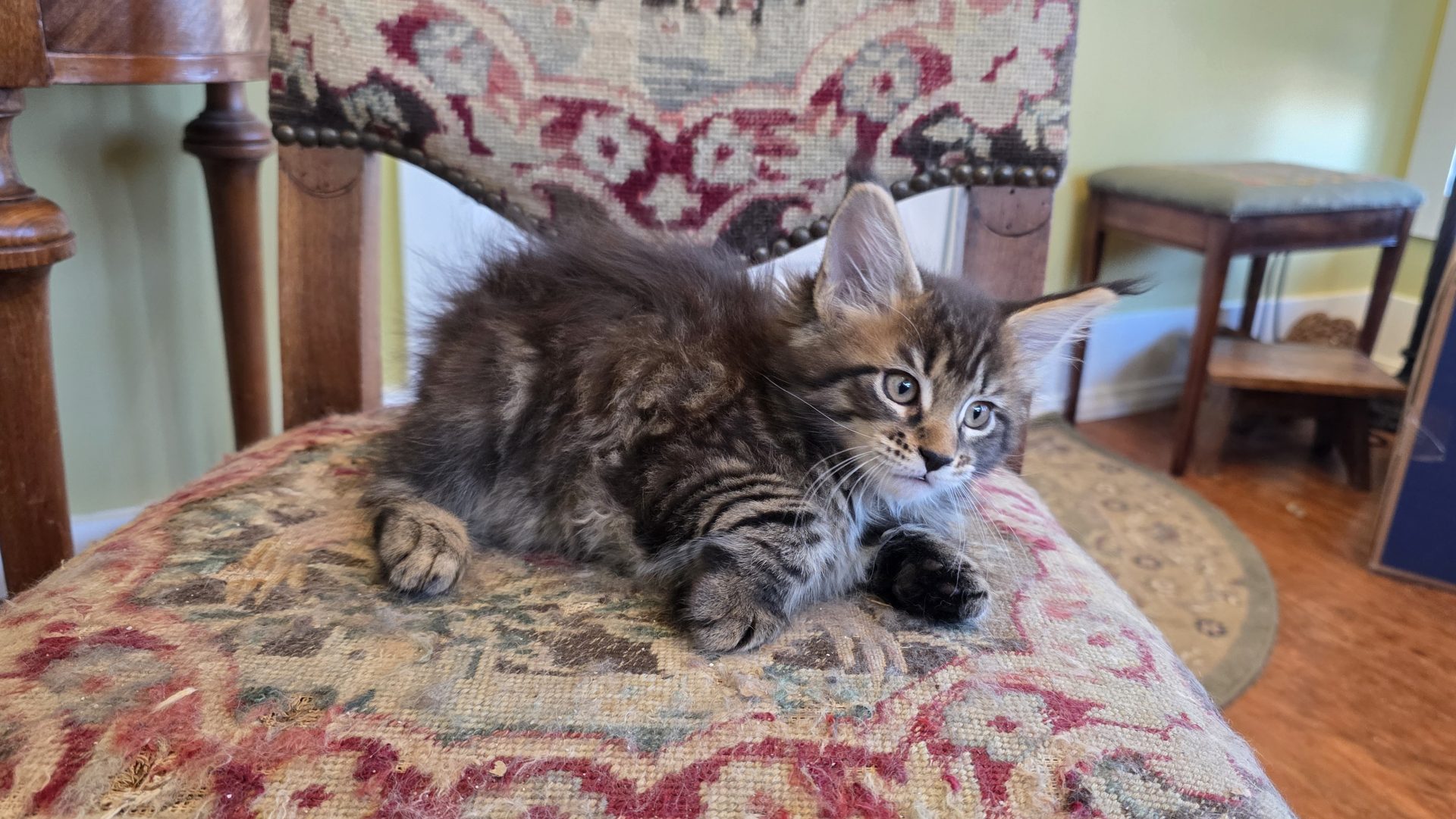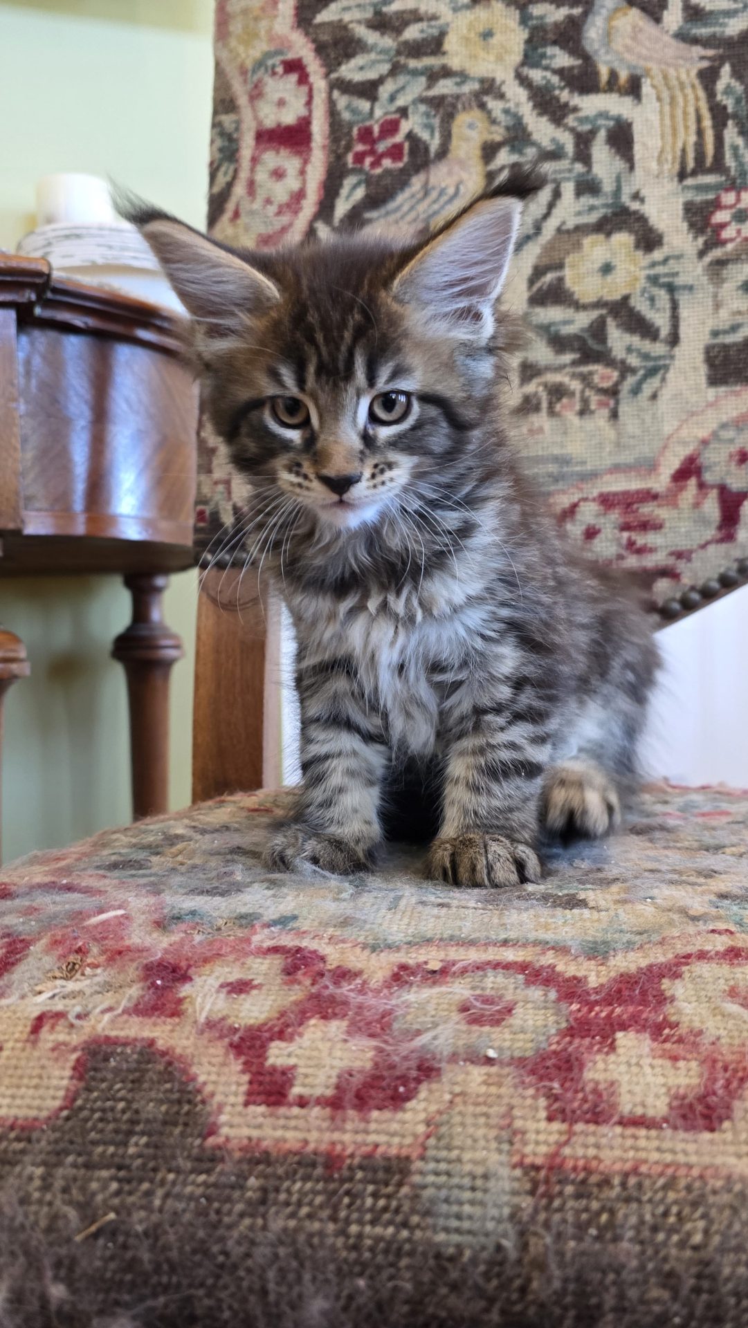 Reserved JOINING PAST JELLICO DREAM KITTENS AXEL, BODE, AND TAHOE IN THE WONDERFUL VENTRESCO FAMILY IN BOSTON!!! When I first saw this kitten, her aura brought me visions of a Classic Brown Tabby Maine Coon standing at the edge of the North Woods in the soft moonlight. So I decided to call her Moonlight. I still have that vision in my mind every time I gaze at her. This is a confident gal who holds her own playing with the boys but cuddles better than any of them. She loves belly rubs, loves to ride on my shoulder, and loves to sleep in the crook of my arm when I take a nap with her litter. Her eyes are deep and warm and full of love and fun. If Robert Frost had seen this girl when "Stopping By the Woods on a Snowy Evening," his poem would have turned out quite differently!