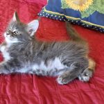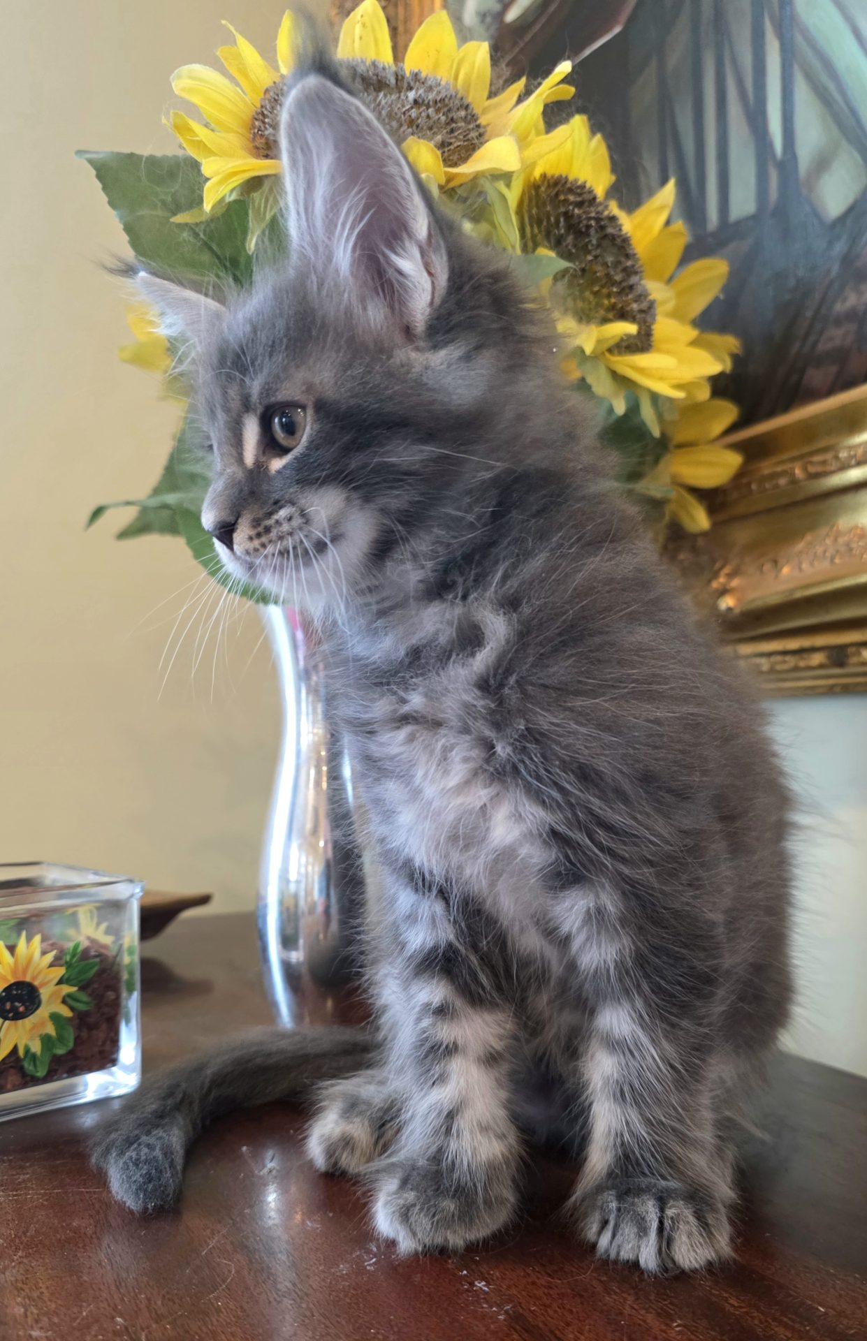 On Hold "THIRD BOXCAR, MIDNIGHT TRAIN, DESTINATION BANGOR, MAINE...." WHERE THIS BOY WILL HAVE A MOST WONDERFUL LIFE WITH THE HAGERTYS! I named this one Suede because his color reminds me of "Blue Suede Shoes." But the Hagertys will call him Alfie, which fits him very well too! With his white eyeliner and muzzle, the white ear outlines against his big dark blue-gray ear tips, and his beautiful smoky blue suede coat, Alfie is absurdly photogenic! I can't take a bad picture of him! He is always throwing poses that make me reach for my camera. He is a happy, friendly, calm and confident boy who likes to cuddle as much as he likes to play. He bounces, pounces, rolls and wallows in all the cutest ways, but curled up right beside you is his favorite place to be. Alfie is really going to be a wonderful companion, and he will bring much joy with him when he arrives in Bangor!