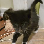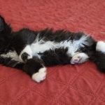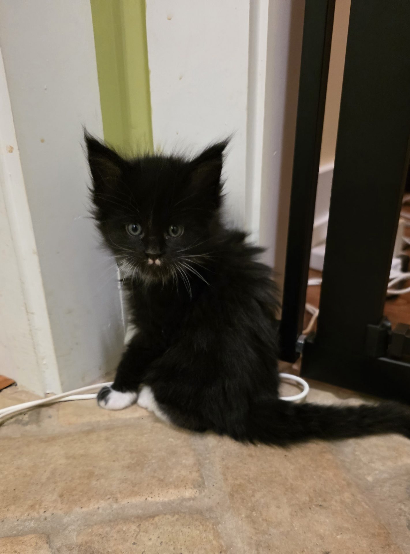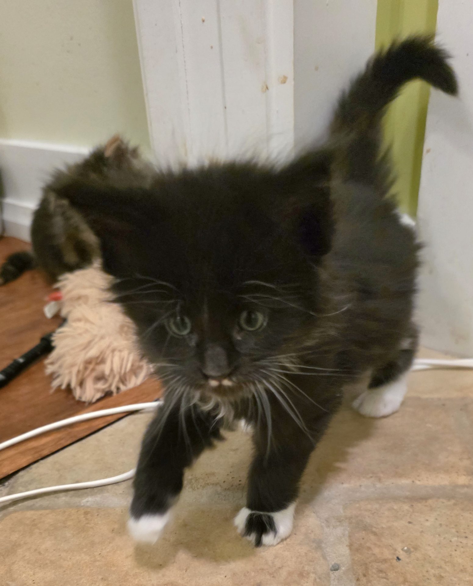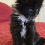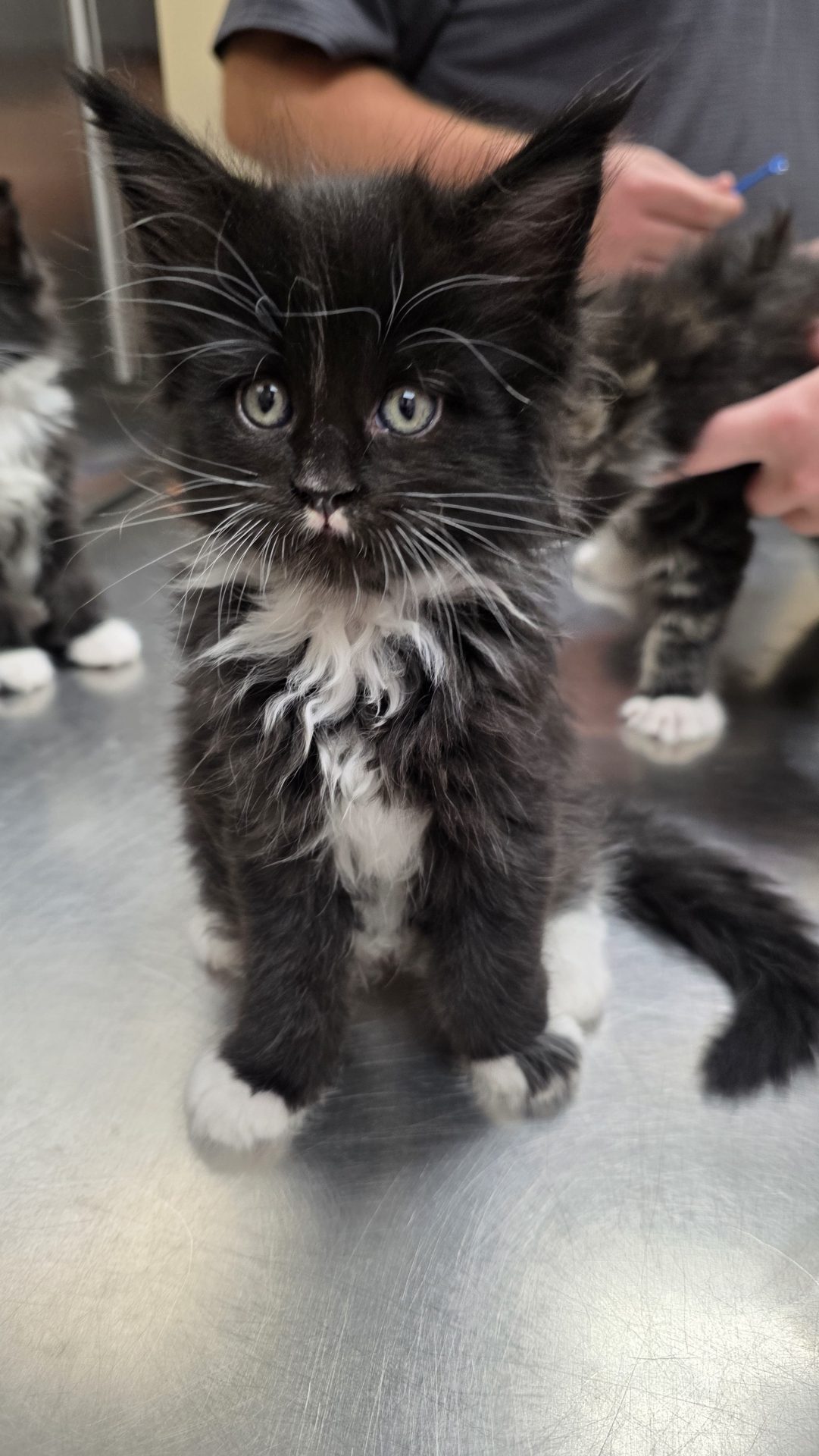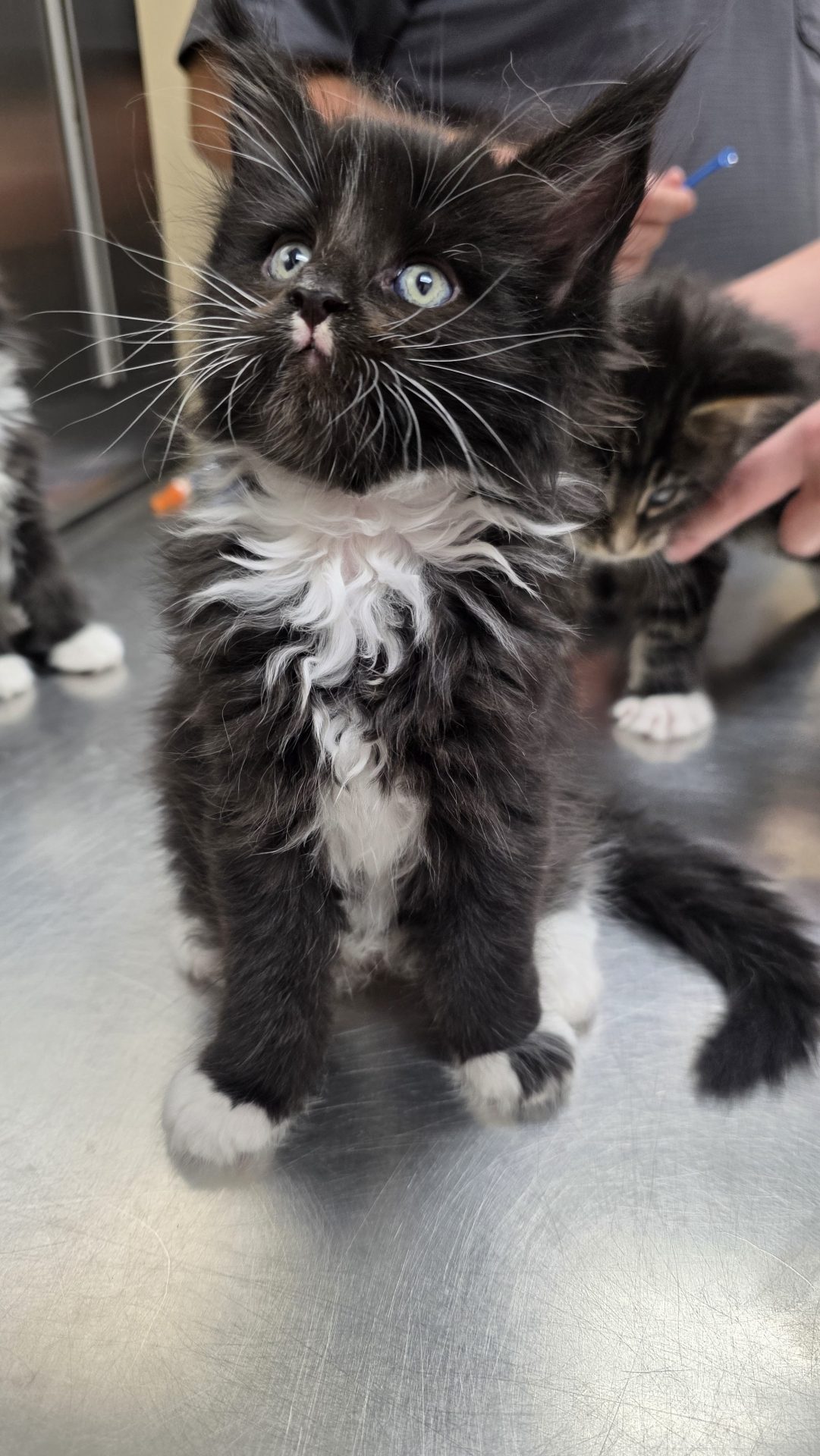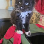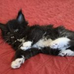 On Hold SOON TO BE THE BEST PRESENT UNDER THE TREE FOR RUBY KUZMA AND HER SON IN ROBERTSDALE, ALABAMA!!! This is Count Dracula in Maine Coon attire! He has the tuxedo, he has the white fangs, and he even has some magical markings on his left front paw! So I call this one The Count. His playfulness is not confined to nighttime, though. He is playful all the time. And he doesn't bite. But boy can he flirt! The Count will be absolutely majestic when he reaches full size in 3 years, and Ruby has promised to let me watch him grow up in pictures! I am thrilled for Ruby and her son, and so happy The Count has found such a good family to call his own!